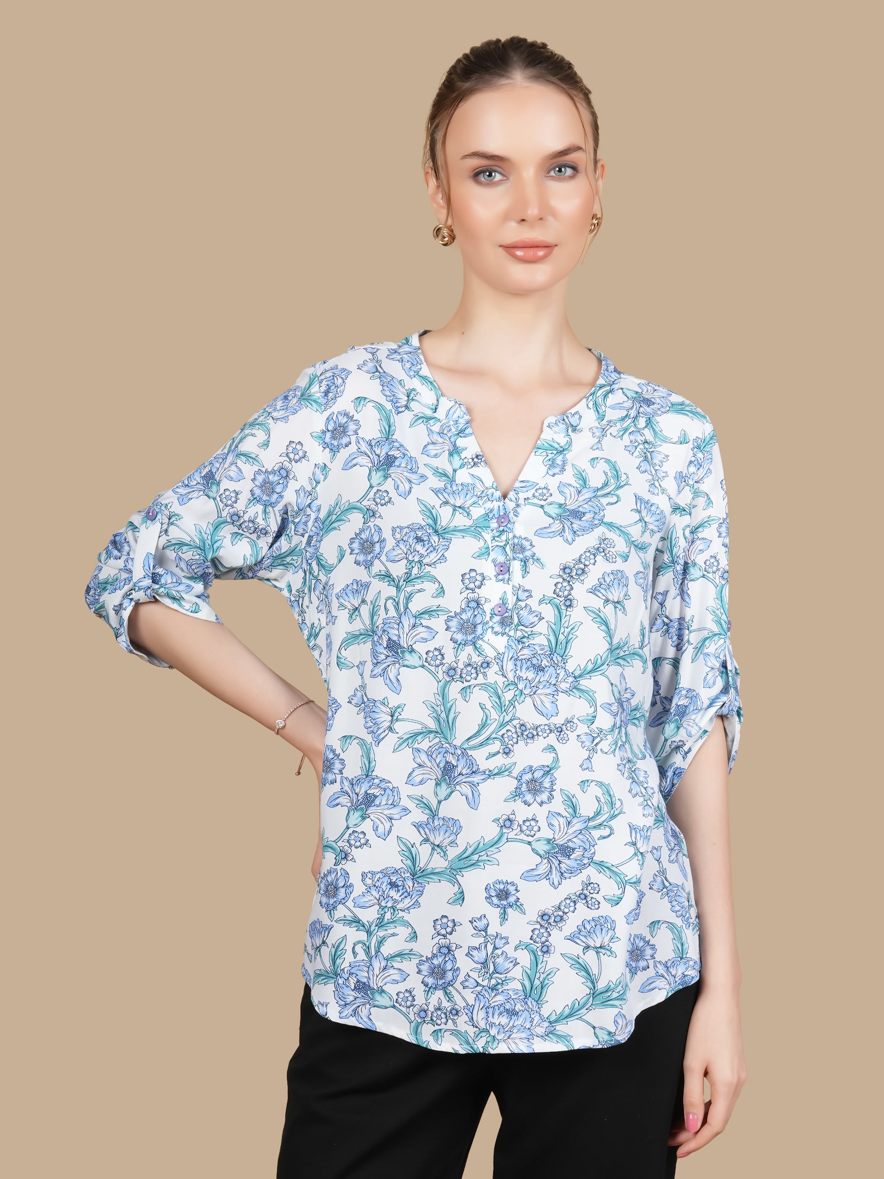 MANDARIN COLLAR HALF BUTTON 3/4TH CUFF TURN UP SLEEVE