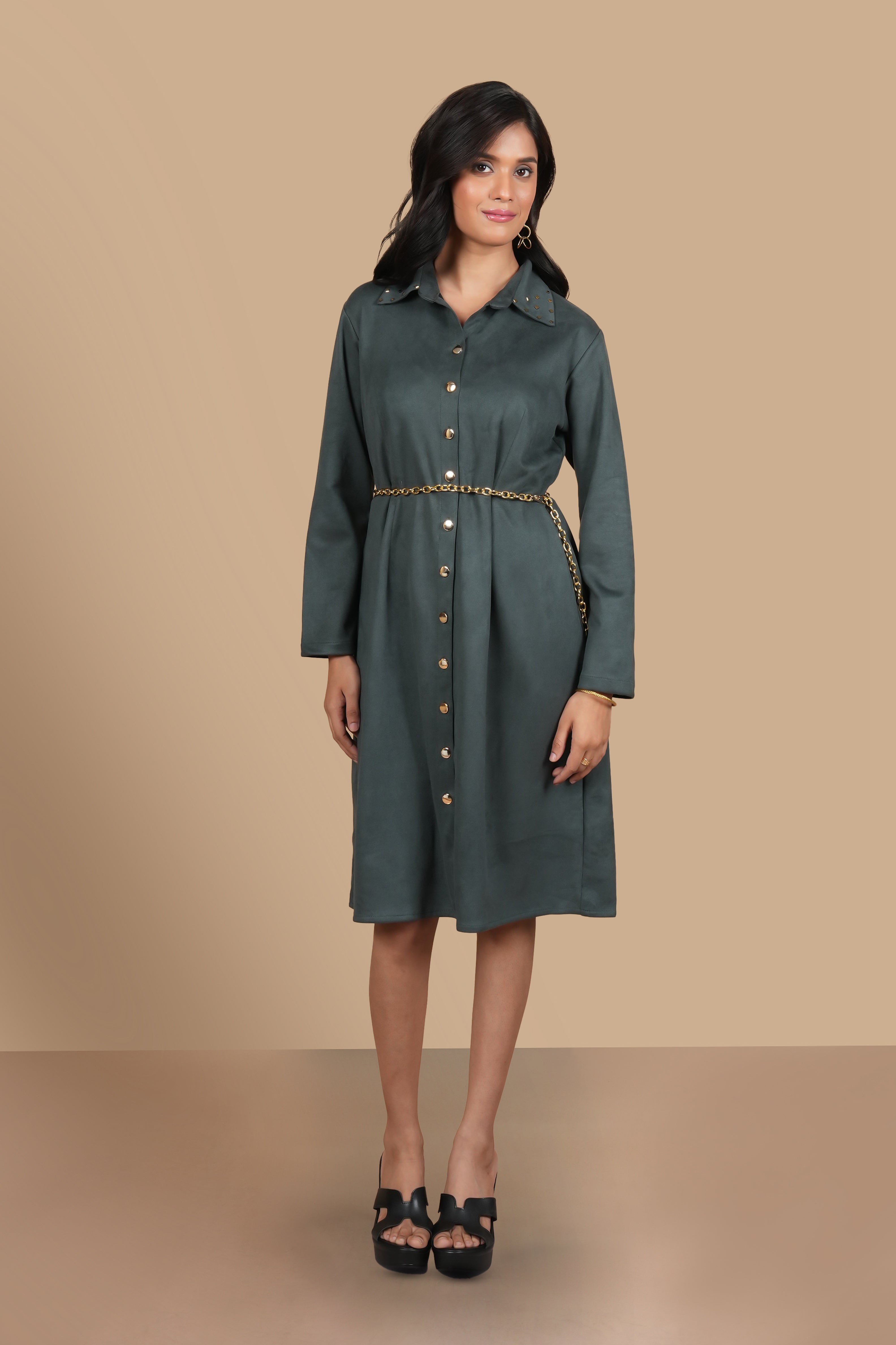 https://justintimefashions.com/products/bottle-green-swarosvki-suede-dress