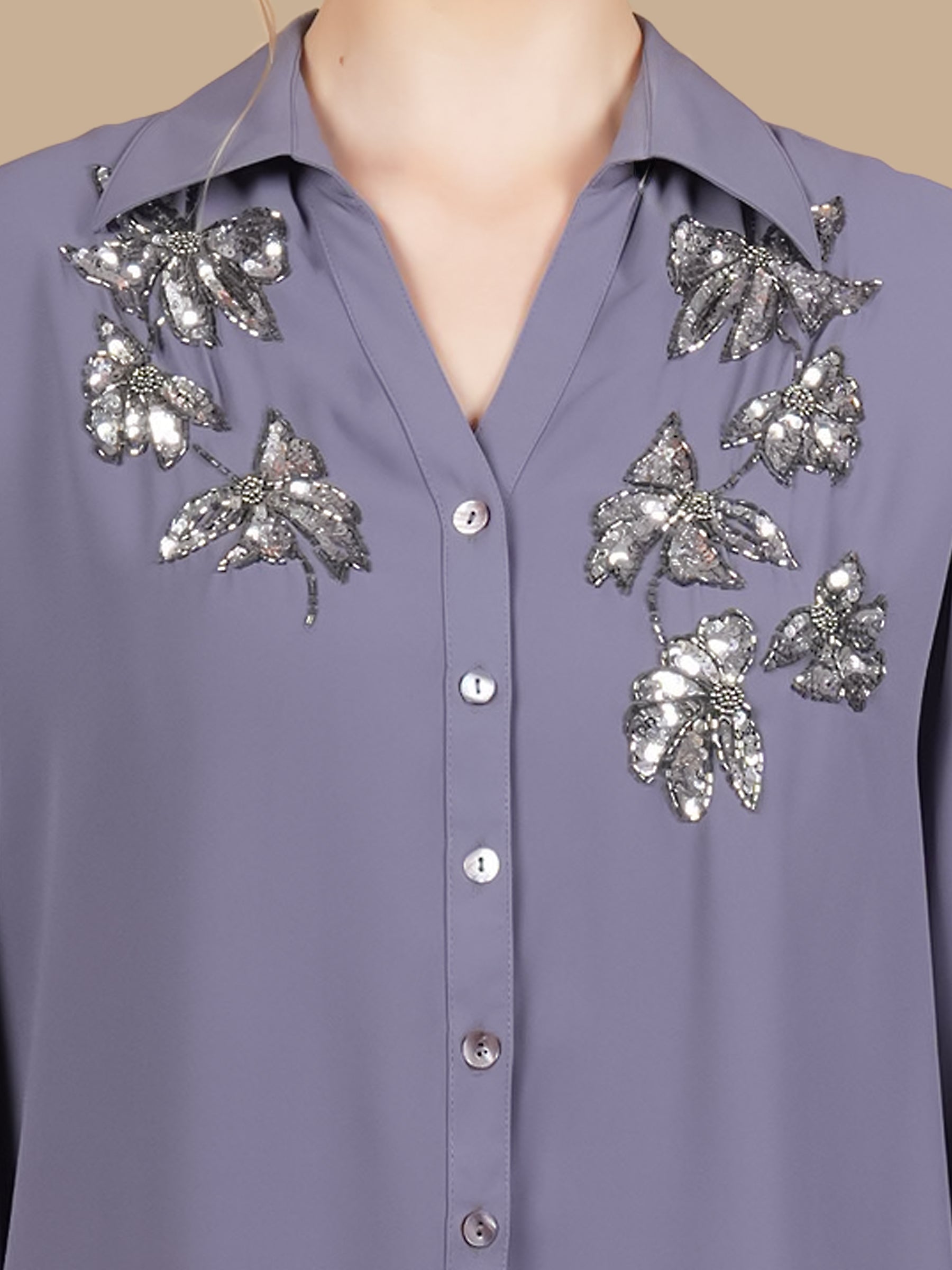 • BUTTERFLY SEQUINS GREY SHIRT
