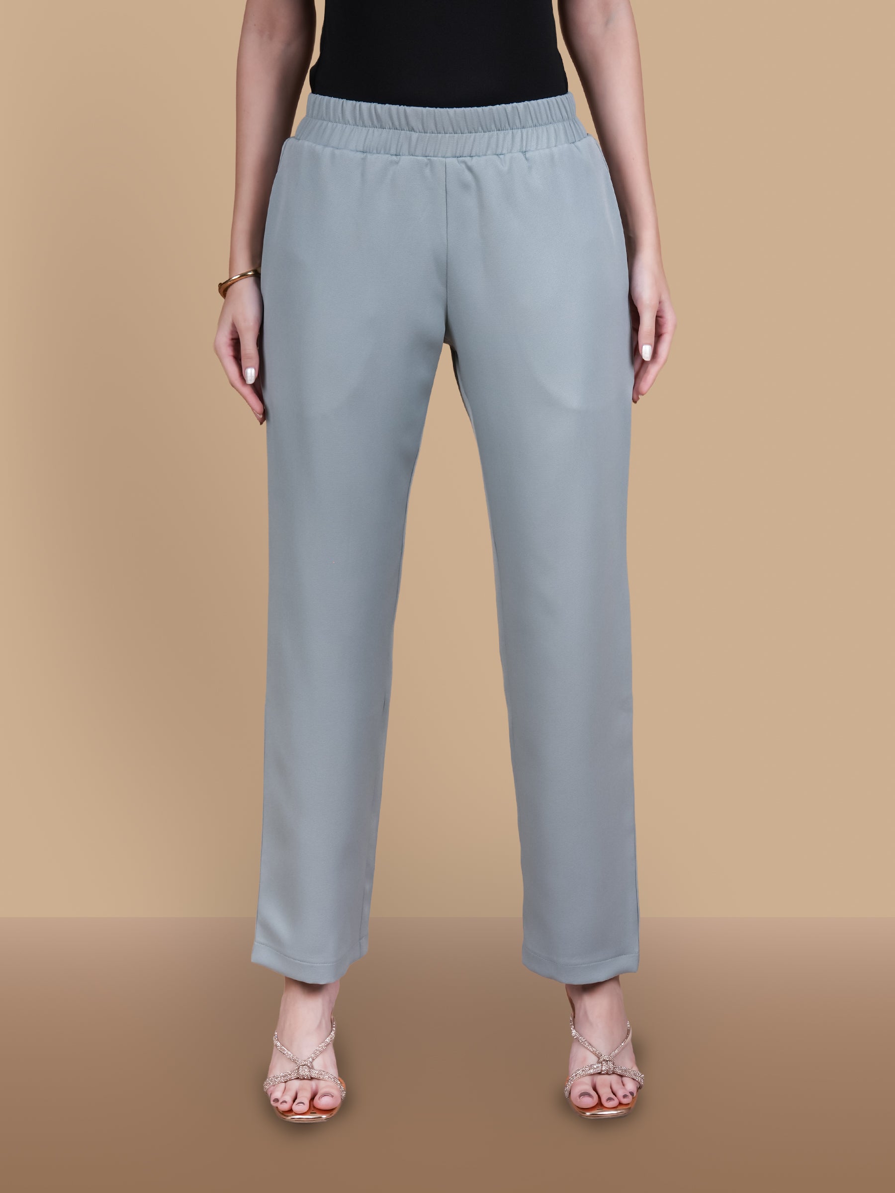 AND TROUSERS WITH ELASTICATED SMOCKING, Ankle-length trousers,