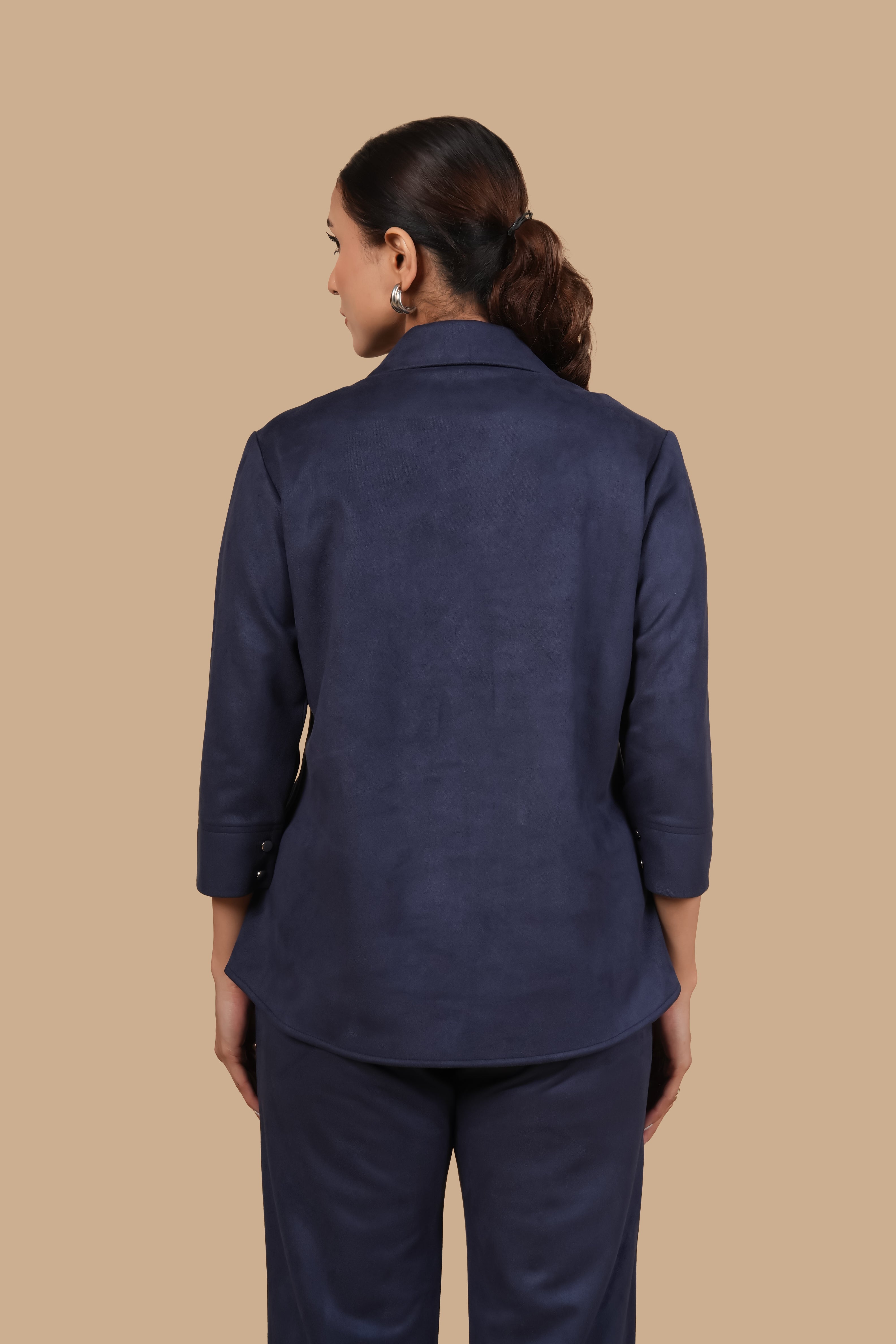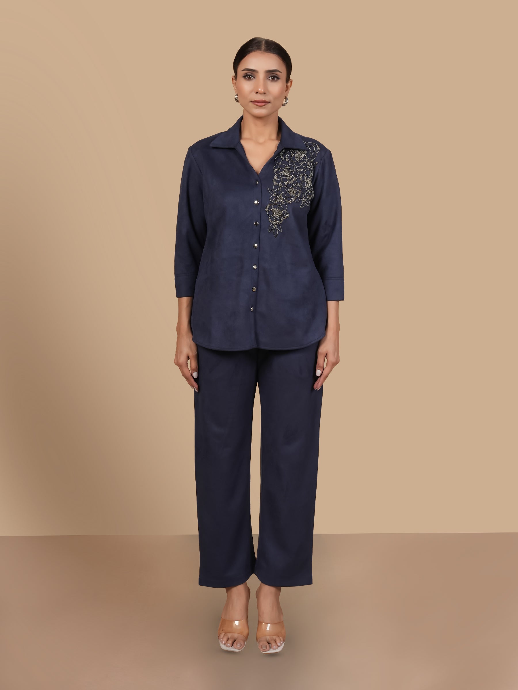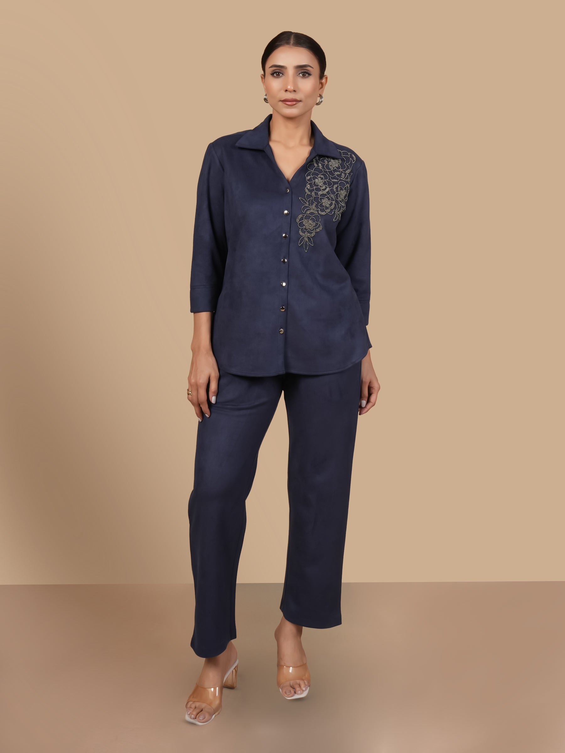 ROSE BEADED SUEDE  NAVY COORD SET ROSE BEADED SUEDE  NAVY COORD SET