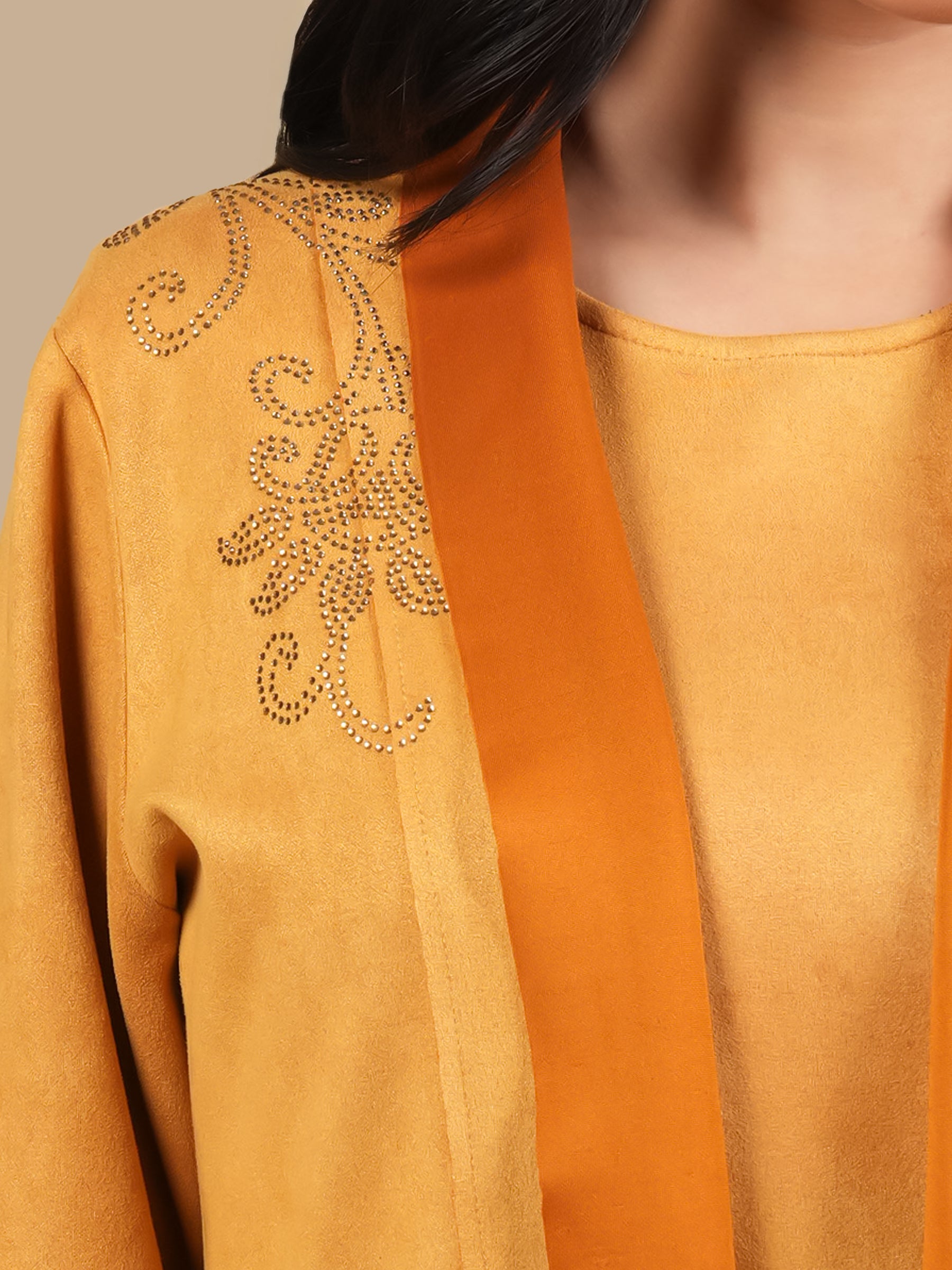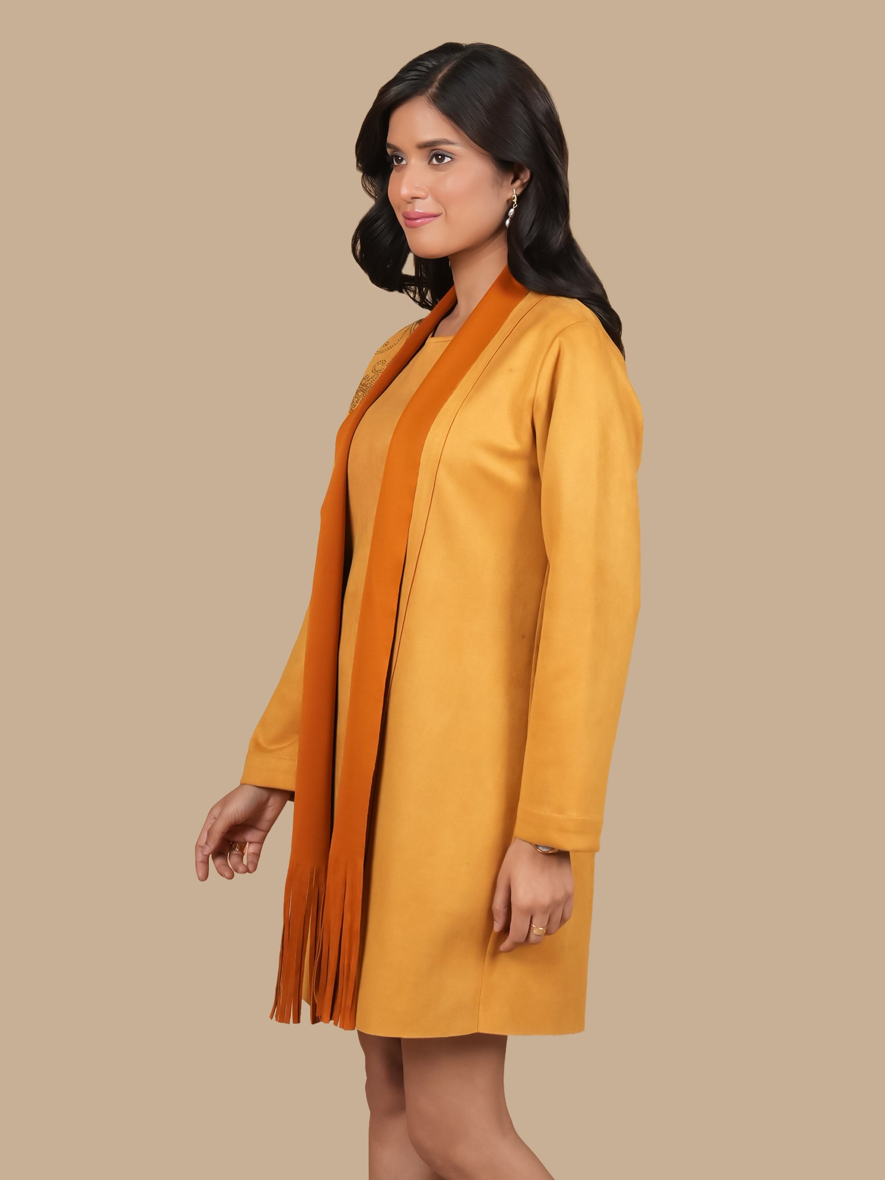 SWAROSVKI MUSTARD  SUEDE SHORT DERESS SWAROSVKI MUSTARD  SUEDE SHORT DERESS