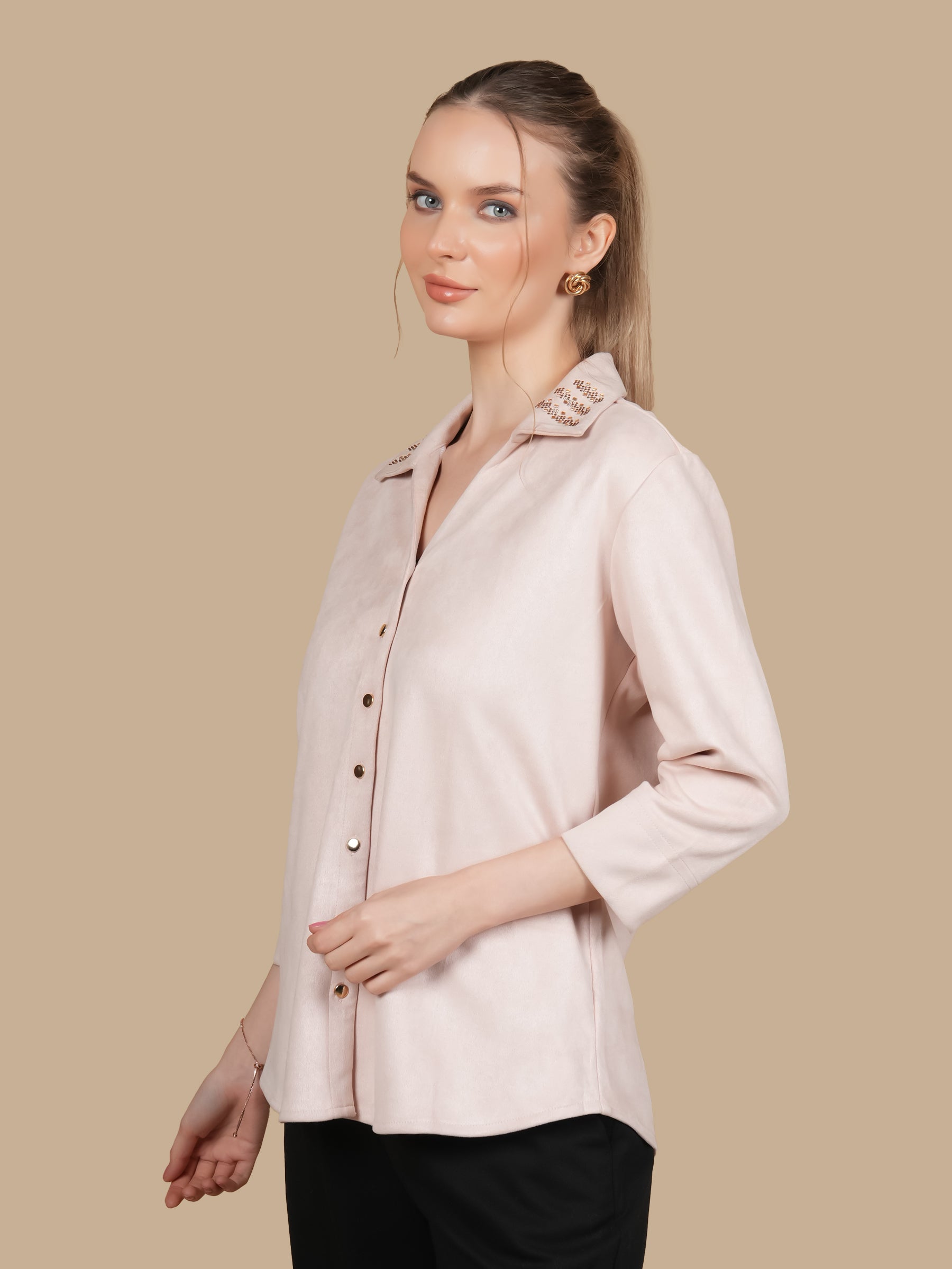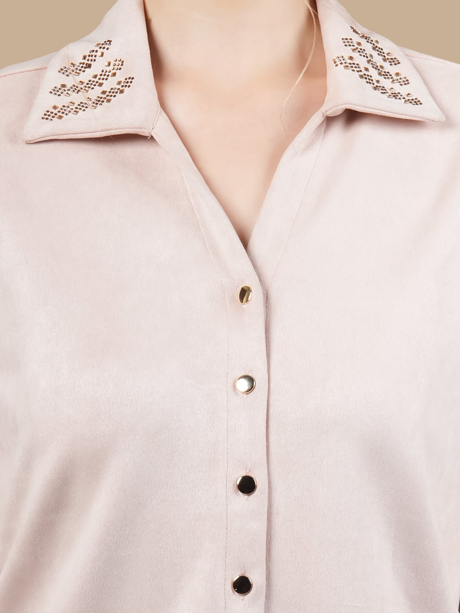 SWAROVSKI COLLAR BLUSH PINK SHIRT