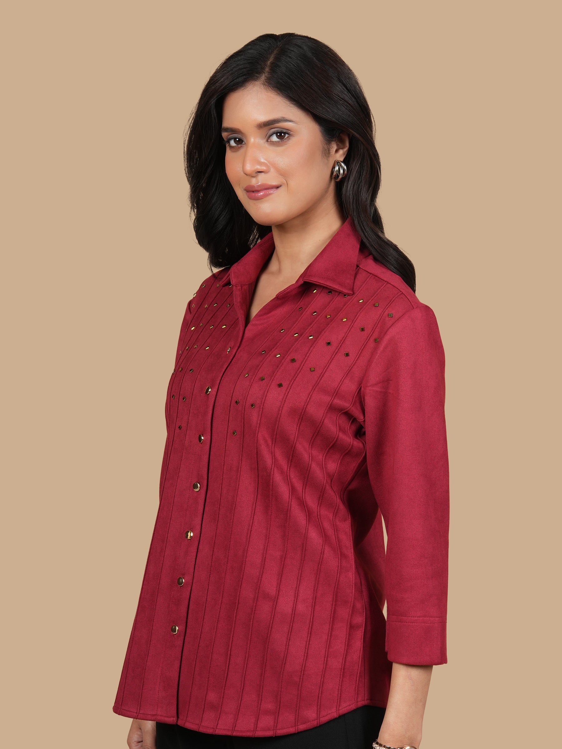 https://justintimefashions.com/products/swarovski-pintuck-red-suede-shirt-1