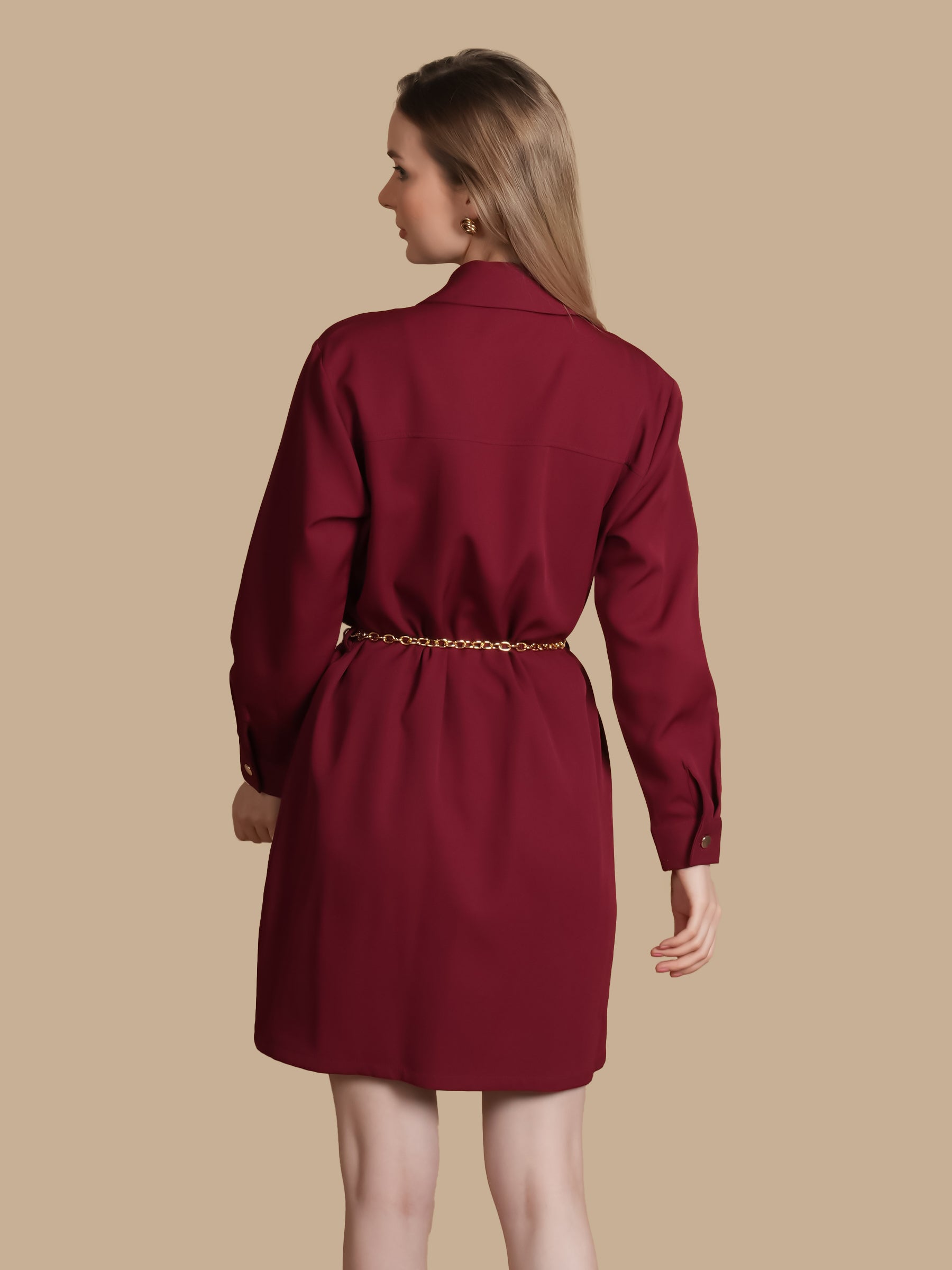 LONG SLEEVES WITH CUFFS AND GOLD CHAIN ADJUSTABLE BELT